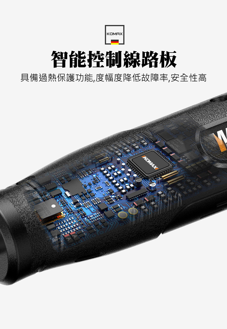 全銅馬達+智能電路板+金屬夾頭結構,動力更強、穩定耐用。