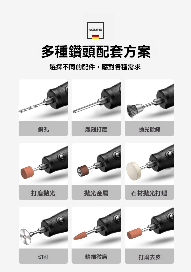 🔧 多功能用途|可打磨、拋光、切割、鑽孔、雕刻、除鏽