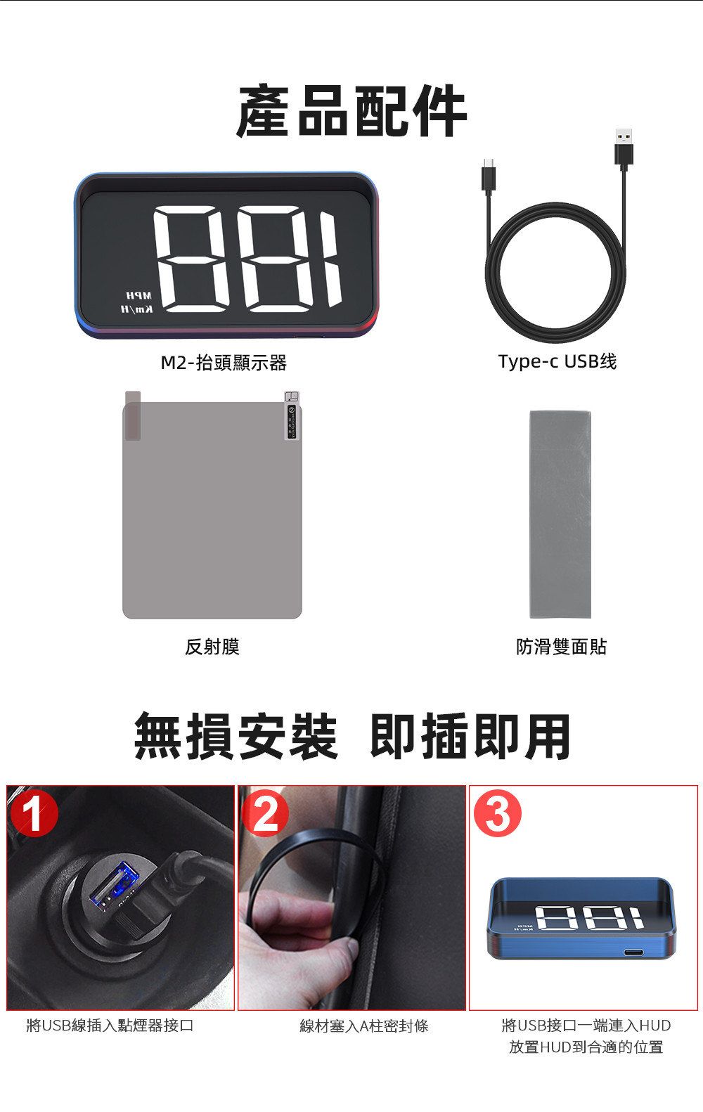 M2抬頭顯示器 USB供電 白光綠光雙模式 車速顯示螢幕 不挑車型 高亮數字顯示 台灣現貨【VR040226】