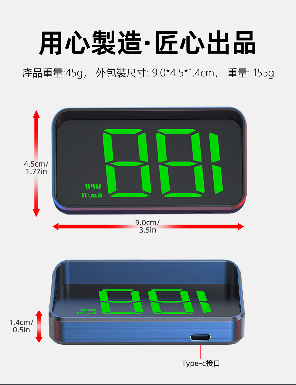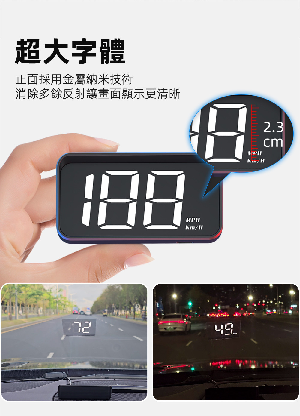 2.3cm超大數字,LED清晰顯示,強光下不反光,抬頭即可掌握時速。