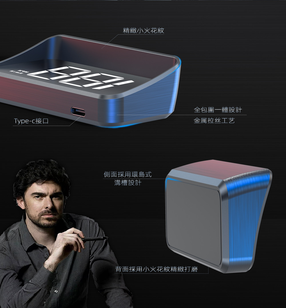 高質感金屬拉絲外殼,精緻小巧不擋視線,安裝不佔空間。