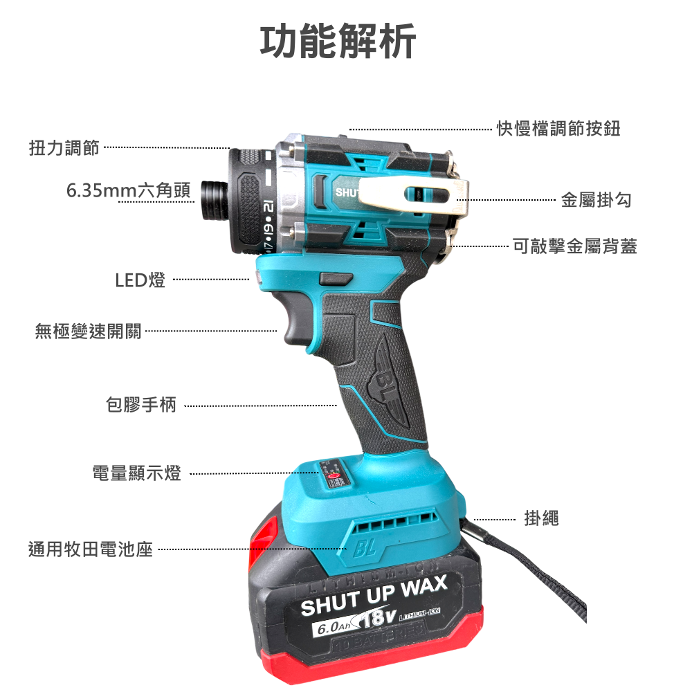 1/4 (6.35mm) 快換夾頭: 六角柄快拆設計,實現免工具秒速更換批頭,確保作業流程不中斷。
