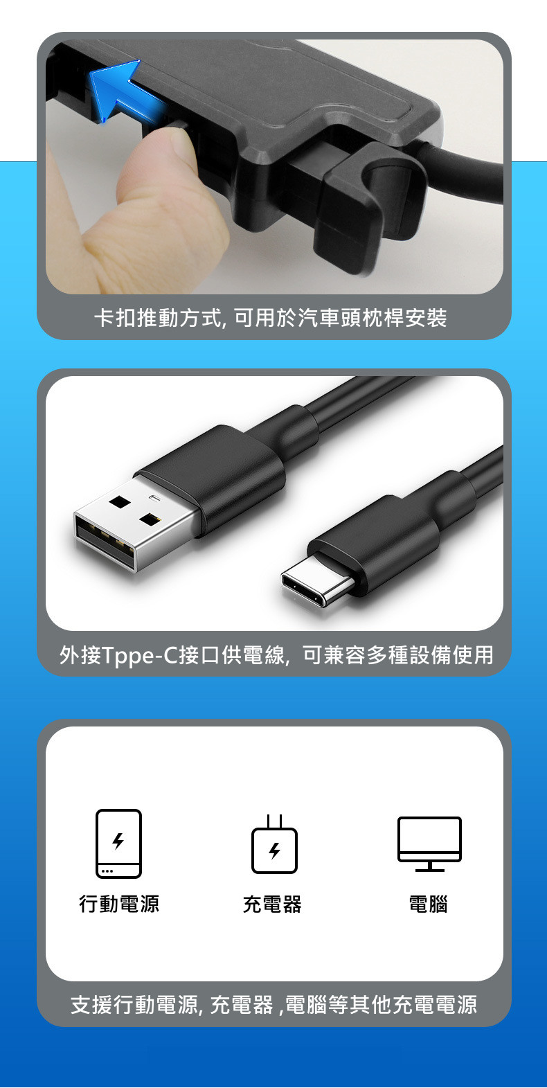 📌 安裝方式:卡扣式安裝於頭枕桿