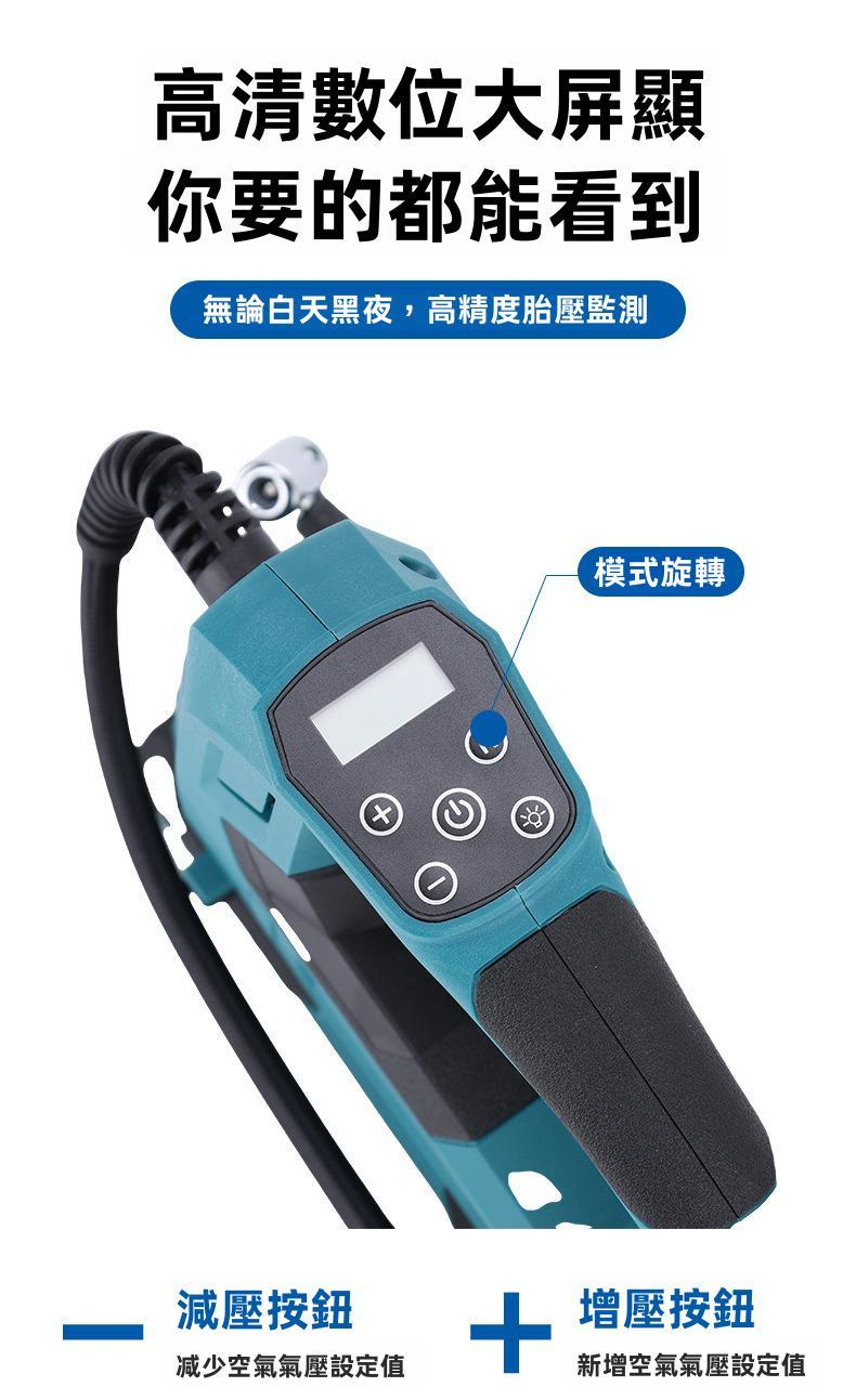 精準胎壓顯示,支援預設值自動停止,不怕打過頭。