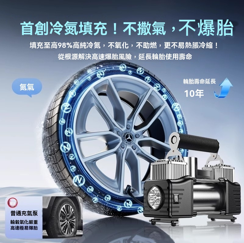 雙缸大馬力|補氣速度更快,15吋輪胎約1分鐘即可完成