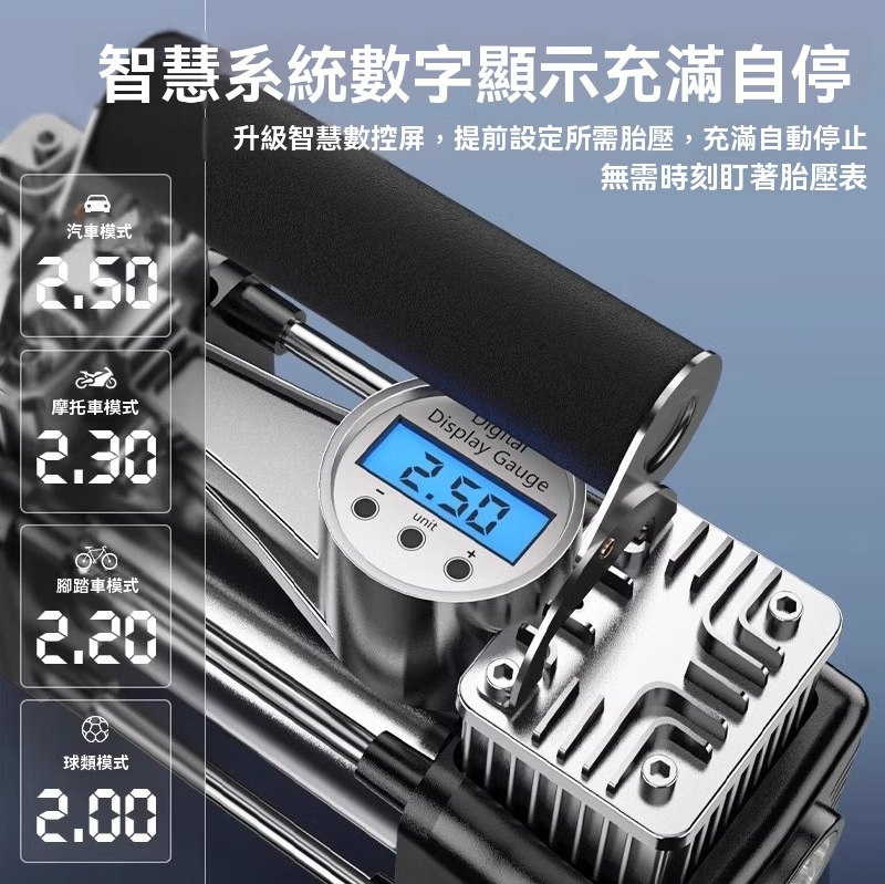 功能:胎壓檢測 / 自動充停(數顯款)/ LED照明