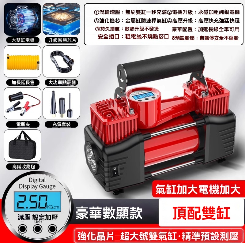 升級雙缸車用多功能打氣機 車用打氣機 多功能打氣機 打氣機 電動打氣機 汽車打氣機 充氣機 台灣現貨【VR1430】