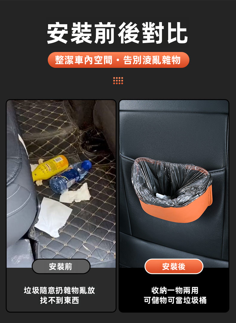 🔹 雙用途設計:可作收納袋或垃圾桶,放瓶罐、面紙、雜物都OK。