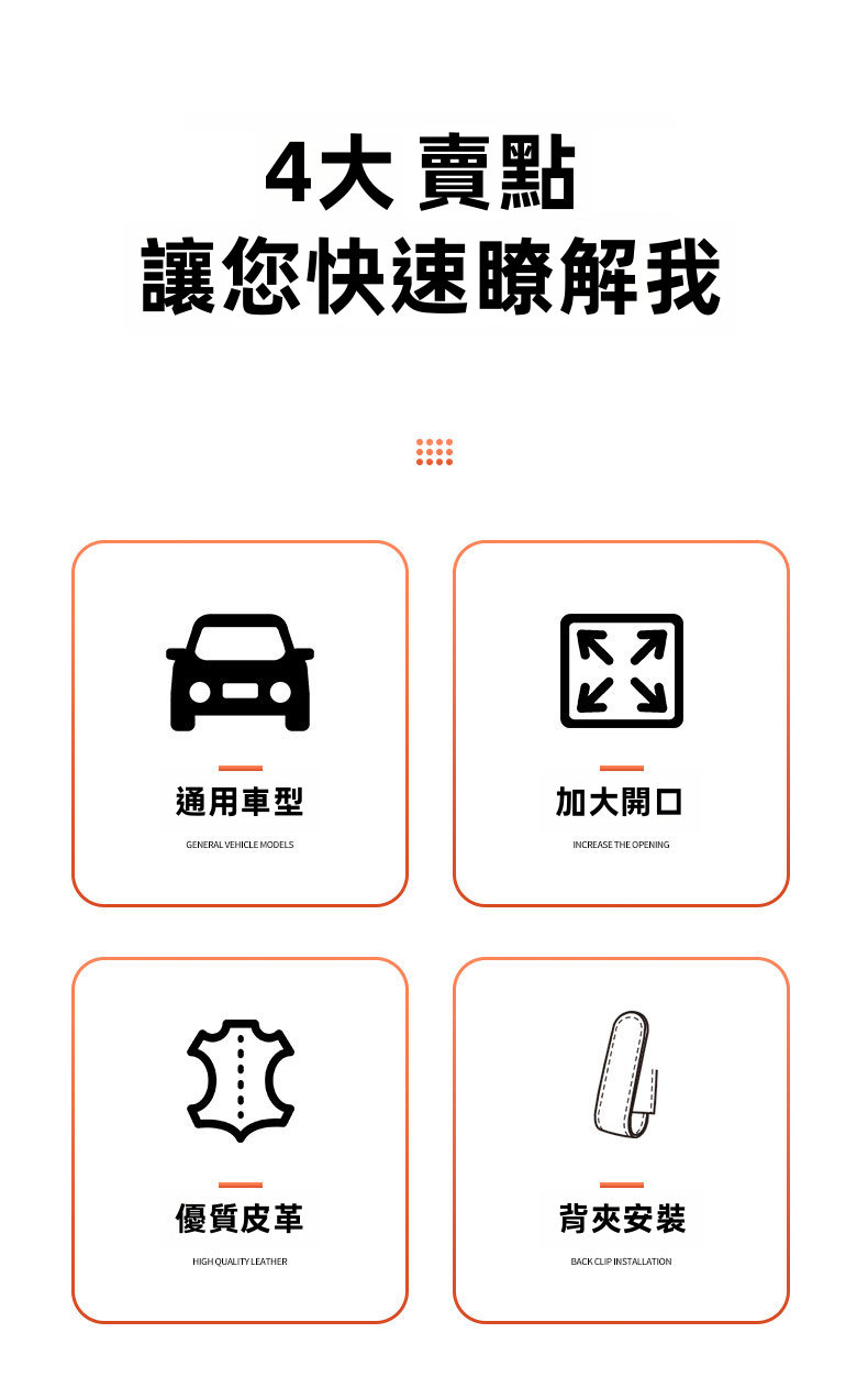 保持車內整潔不再難!通用各車型設計,無論前座、後座、車門、中央扶手都能輕鬆安裝。