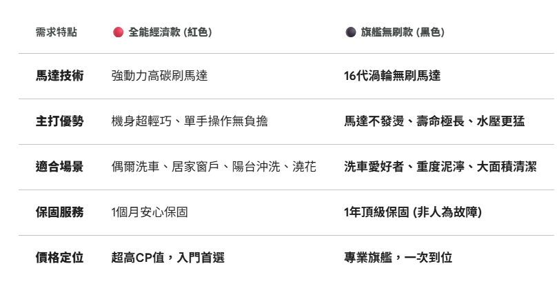 適合: 洗車發燒友、大面積清潔、追求機具長壽命者。