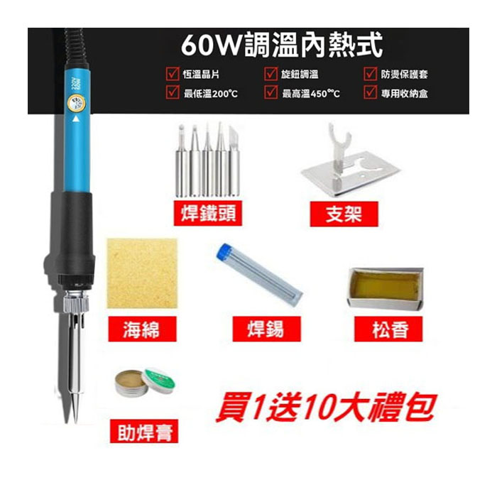 專業級電烙鐵,60W大功率,升溫迅速,最低100°C即可作業,高溫達500°C,應對各式焊接需求。