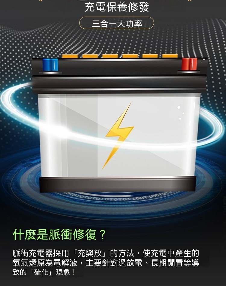 支援智能脈衝修復,長期沒開、電瓶虛弱也能救援保養